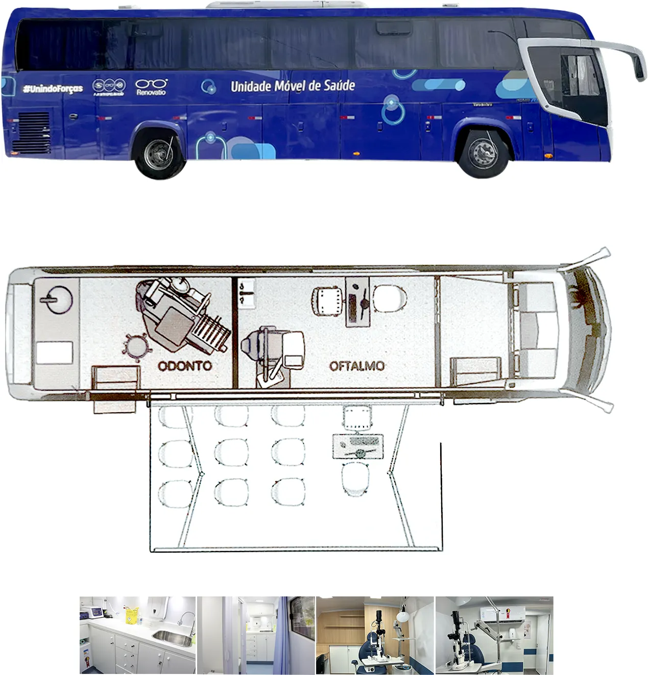 Os ônibus para saúde são especialmente adaptados para que todo o espaço dele seja aproveitado para os equipamentos e mobiliário necessários à implantação de uma unidade médica móvel.